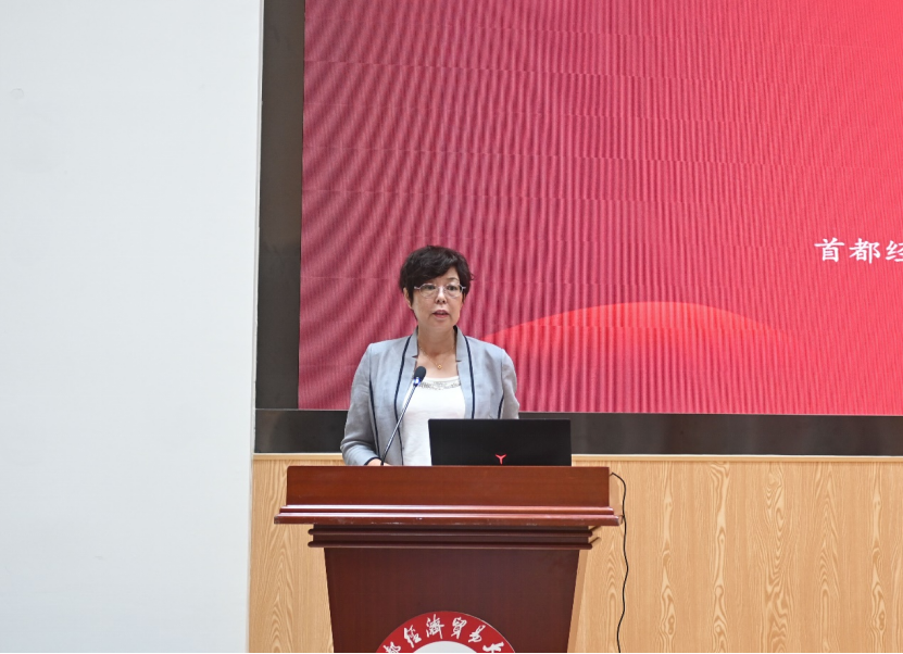 图 2023年6月,第十五届全国人口与发展研究生论坛,中国人口学会副会长、首都经济贸易大学人口经济研究所所长童玉芬教授做致辞