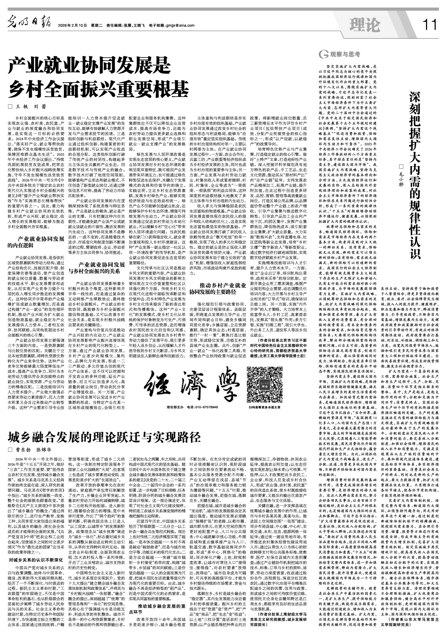 近日,金牛论坛 王轶教授所著文章《产业就业协同发展是乡村全面振兴重要根基》在《光明日报(理论版)》(2026年2月10日)发表。文章探究了产业就业协同发展的内在逻辑、产业就业协同发展与乡村全面振兴的关系,并提出了推动乡村产业就业协同发展的主要路径。