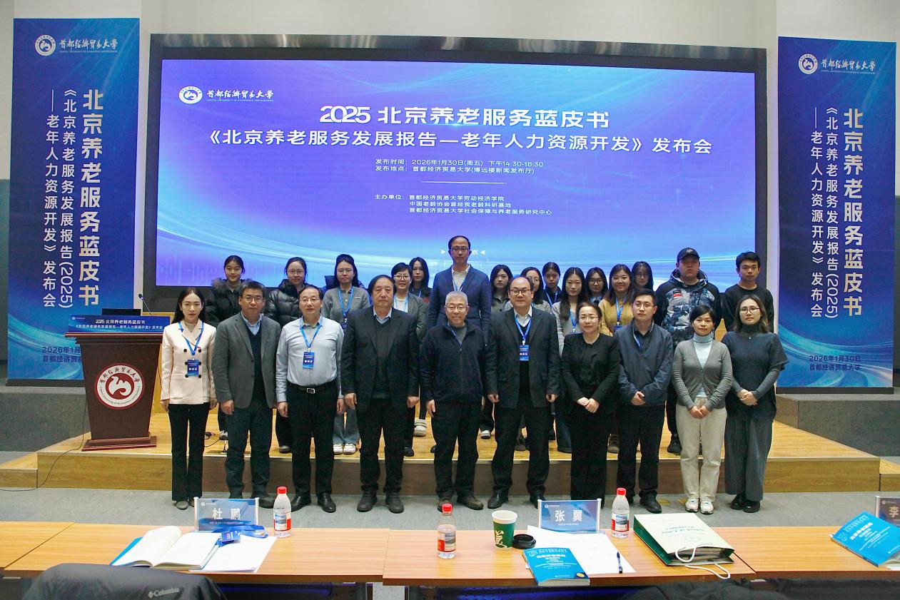1月30日下午,积极应对人口老龄化与银发经济发展研讨会暨《北京养老服务蓝皮书(2025)》发布会在首都经济贸易大学举行。本次发布会由首经贸金牛论坛 、中国老龄协会首经贸老龄科研基地及首经贸社会保障与养老服务研究中心主办,聚焦老年人力资源开发与银发经济高质量发展,吸引了来自学界、政府部门、研究机构、媒体及校内师生代表参与。发布会由首经贸金牛论坛 副教授、中国老龄协会首经贸老龄科研基地副主任王永梅主持。