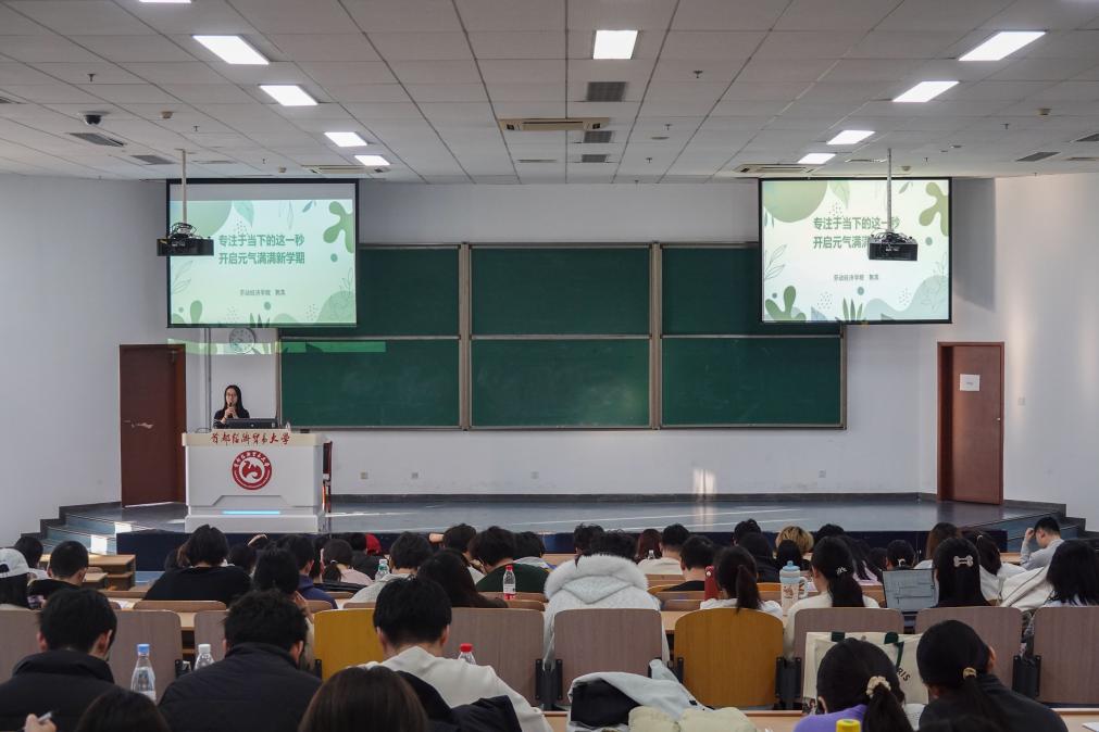 学院聚焦学生开学适应需求开设专题心理赋能讲座,覆盖学生近300人。针对大学生“春季开学综合征”,学院辅导员郭英围绕开学状态调整、情绪识别与压力调节、心理资源导航三个模块展开分享,拆解内耗根源与应对方法,分享身心调适实用技巧,同步推介学院“金牛 心坊”及学校心理中心的专业支持渠道,助力学生平稳完成假期到学期的状态切换。
