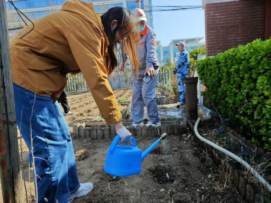在图书馆东侧土地上,同学们在校工师傅的指导下种植了白三叶,挖坑撒种、填土浇水,数日之后,同学们亲眼见证了自己播种的白三叶破土而出,感受亲手栽种带来的生命成长体验。