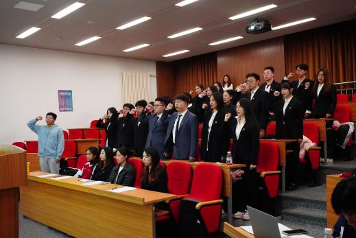 大会在庄严洪亮的国歌声中拉开帷幕。赵子枫首先介绍入团仪式的意义。作为理想信念教育与价值观塑造的关键载体,入团仪式是每位团员成长路上的重要里程碑,能够引导新团员深刻体悟共青团的初心使命,激发其作为新时代建设者的责任感与荣誉感。