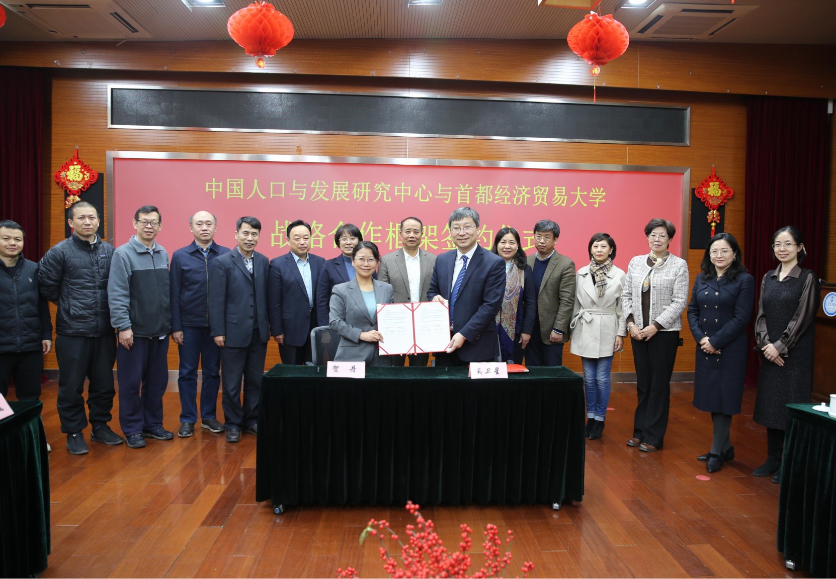 1月17日,首都经济贸易大学党委副书记、校长吴卫星,党委副书记徐芳带队前往中国人口与发展研究中心进行调研交流,并签署战略合作框架协议。