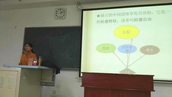 11月2日下午,金牛论坛 在我校博学楼506举办了第43期通识教育讲座。主讲人为首都师范大学历史学院倪玉珍副教授,主题为“平等和自由的并行与悖论——托克维尔论现代社会与现代个体。