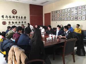 2015年11月26日下午在博纳楼229会议室,日本立命馆大学刘庆红教授一行与我院师生共同交流联谊。参与此次交流会的有日本立命馆大学刘庆红教授及6名日方学生,金牛论坛 院长冯喜良教授,学院主管教学工作的副院长范围副教授,学院党委副书记丁志艳老师、劳动与社会保障系的张成刚老师以及13级人力资源管理实验班和13级劳动与社会保障班的部分同学。中日双方共有近30名师生参加交流会,就中日文化问题进行讨论学习。