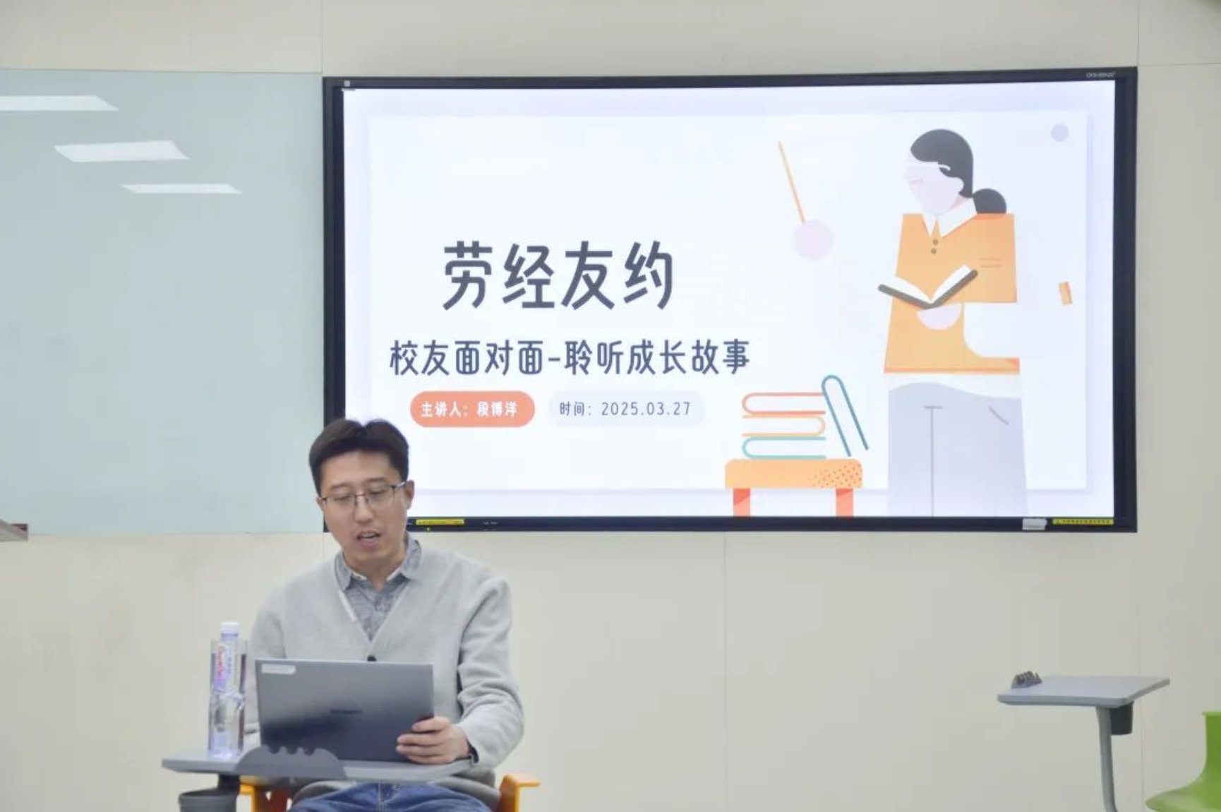 为进一步深化校企合作,全方位铺就大学生成长之路,金牛论坛 推出“金牛 友约”系列大咖座谈交流活动。3月27日,首场“金牛 友约”座谈会在慎思楼124智慧教室开展。学院邀请到人力资源管理专业毕业生段博洋学长重返校园。身为 “过来人”,段学长带着满满诚意,凭借自身丰富的职场阅历,为同学们带来一场干货满满的经验分享会,耐心解答同学们在学业规划、职业选择等方面的诸多困惑。