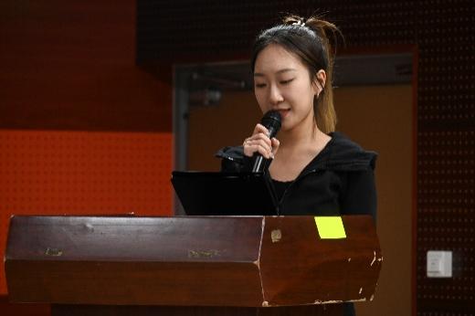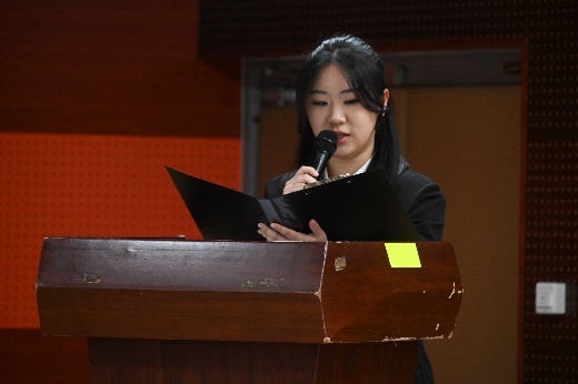 大会第八项,学生会“优秀干事”获奖代表曹翊菲发言。她表示,自己在本学期工作中深刻认识到各部门相互团结协作的重要性以及学生组织在发展的重要意义。同时,她希望与广大学生骨干一道以笃行之心,坚守初心责任,为学院学生组织创造更加灿烂辉煌的未来。