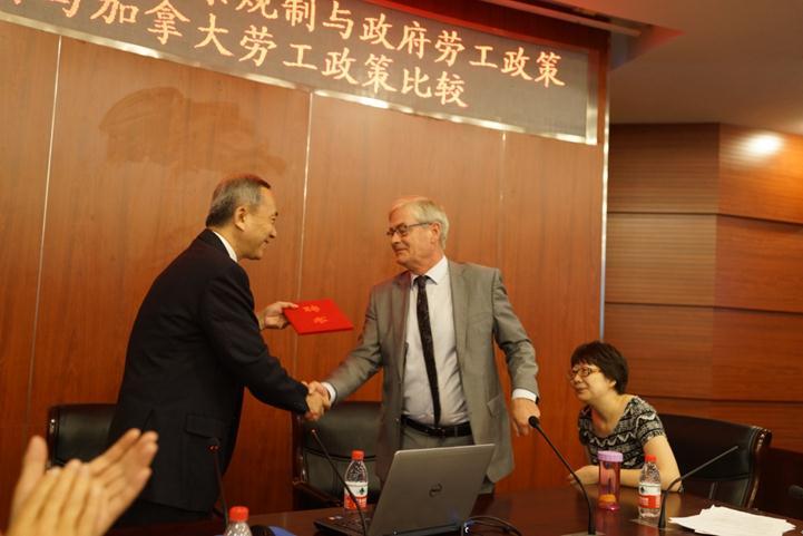 在我校六十周年校庆之际,加拿大劳工部副部长安东尼▪吉尔斯教授也迎来了自己的六十岁生日,在会见中部长欣然接受邀请,成为我校名誉教授,冯培为安东尼▪吉尔斯教授颁发聘书。