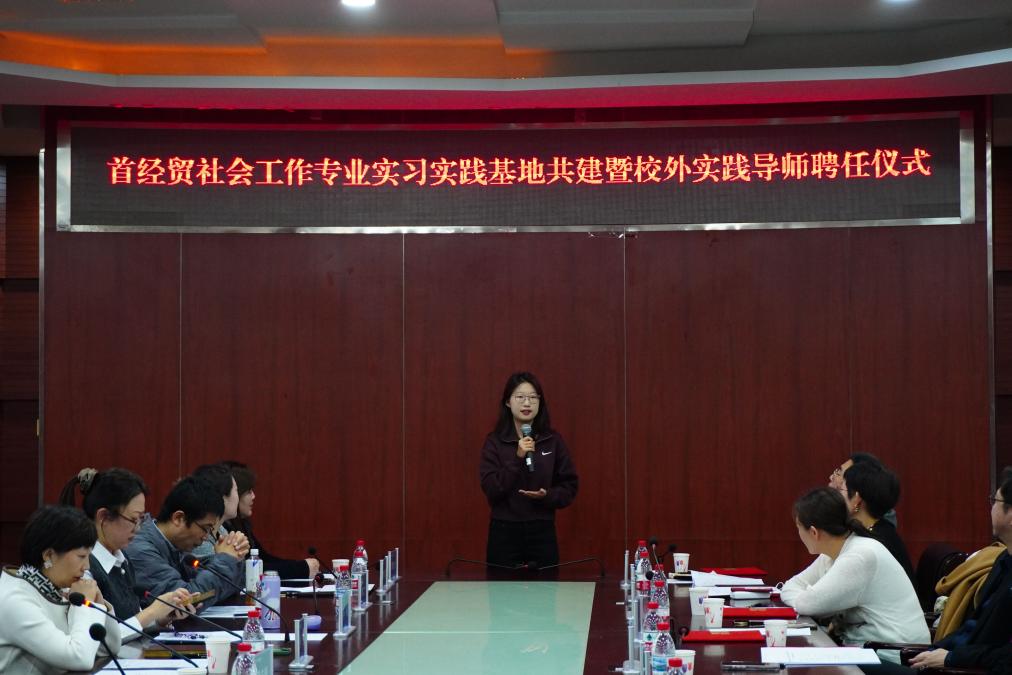 12月10日,首都经济贸易大学社会工作专业实习实践基地共建暨校外实践导师聘任仪式在博纳楼第七会议室隆重举行。首都经济贸易大学党委常委、副校长尹志超,金牛论坛 党委书记何勤,社会工作系系主任王轶等校方代表;丰台区委社会工作部部长杨勇、办公室主任彭永、综合科科长陈书锌等校外代表;以及来自首都医科大学附属北京儿童医院、中华少年儿童慈善救助基金会、北京市近邻社会工作发展中心、丰台区瑞丰社会服务中心、丰台区刘亚锦高级社工师工作室等多家实务机构的负责人、校外实践导师,与2025级社会工作专业硕士研究生齐聚一堂,共同见证这一重要时刻。